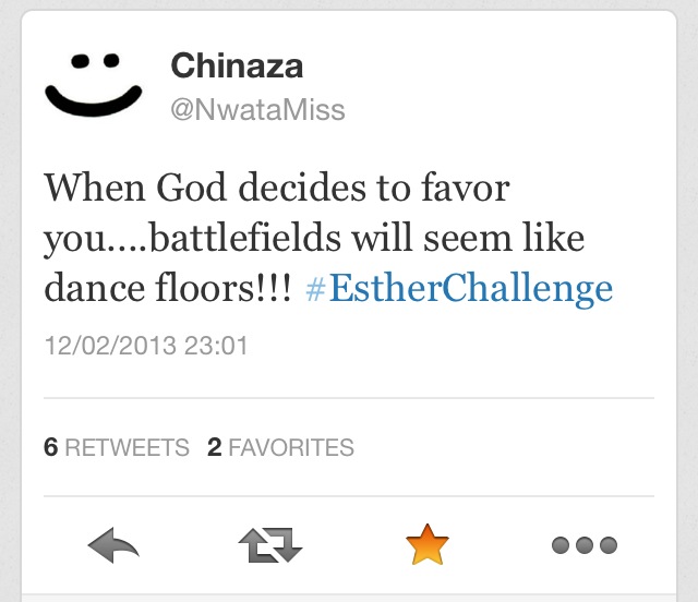 God is soooooo amazing, reading chap 5 at first I was like Esther is really stalling here!!! However chap 7 makes you realise she was waiting on God, she was being patient… Her patience allowed God to work on the king’s heart and reminded him of our ‘brader’ Mordecai even to the point of honouring him….just beautiful. Patience is an amazing thing we take for granted and at times it becomes a burden, especially in this fast pace age. Esther patience and obedience allowed her to realise that God was in control, putting him in the driving seat. She didn’t even have to stress over the intricate details of how to save the Jews, she just had to put her trust him. (Proverbs 3:5-6) Ladies let’s allow God to become the centre of all our issues and enter that amazing place of rest. Blessings!! – Paulina, @Psoulflower