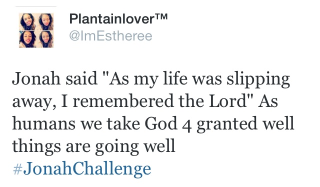 Just like Jonah, God’s discipline will go as deep as it needs to go in order for you to experience the depth of his grace. It also occurred to me that we easily forget the ways in which God has led us through trials in the past especially when new ones arise. Always give him praise and thanksgiving in all. Finally, the last verse shows God’s power over his own creation. He spoke to the fish and it vomited Jonah, even the fish was obedient. Lol it has no choice! Ebun (@JollyEbz)