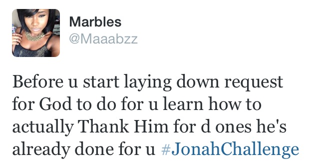 Surprisingly, Jonah didn’t pray intently for God to bring him out of the belly of the fish. Instead, he prayed the prayer of thanksgiving- thanking God for accepting him even when he fluttered and failed God, thanking God for His loving kindness and mercies, thanking God also for strength (verse 7)- This shows that we can touch the heart of God by just thanking Him. He loves to be praised, who doesn’t. So, why not give Him all the praise, worship and adoration. Thank Him in advance, even for the things He hasn’t done. – Ijeoma Ekpenuma, @Fathers__pride