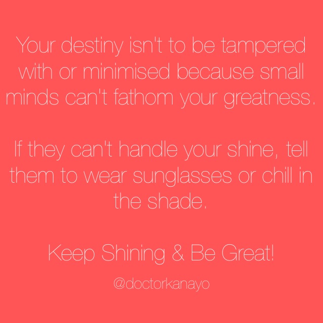 ‘If they can’t handle your shine, tell them to wear sunglasses or chill in the shade’ Don’t dim your light for anyone! Keep shining. — Kanayo Dike-Oduah