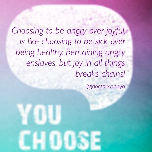 Choosing to be angry over joyful, is like choosing to be sick over being healthy. Remaining angry enslaves, but joy in all things breaks chains!