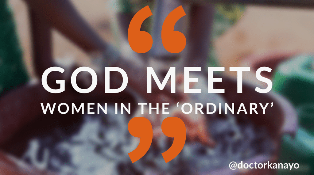 Women are blessed with numerous examples of Jesus meeting women in the midst of ‘womanly activities’. John’s account of the woman at the well is just one example (John 4).