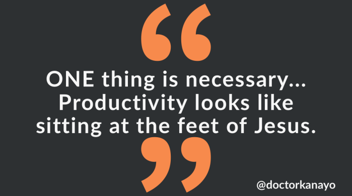 โBut the Lord answered her, โMartha, Martha, you are anxious and troubled about many things, but one thing is necessary. Mary has chosen the good portion, which will not be taken away from her.โ Lukeโฌ โญ10:41-42โฌ โญESVโฌโฌ Choose the ONE thing over the many. At a time where people, especially believers seem to be doing … Continue reading One thing is necessary…